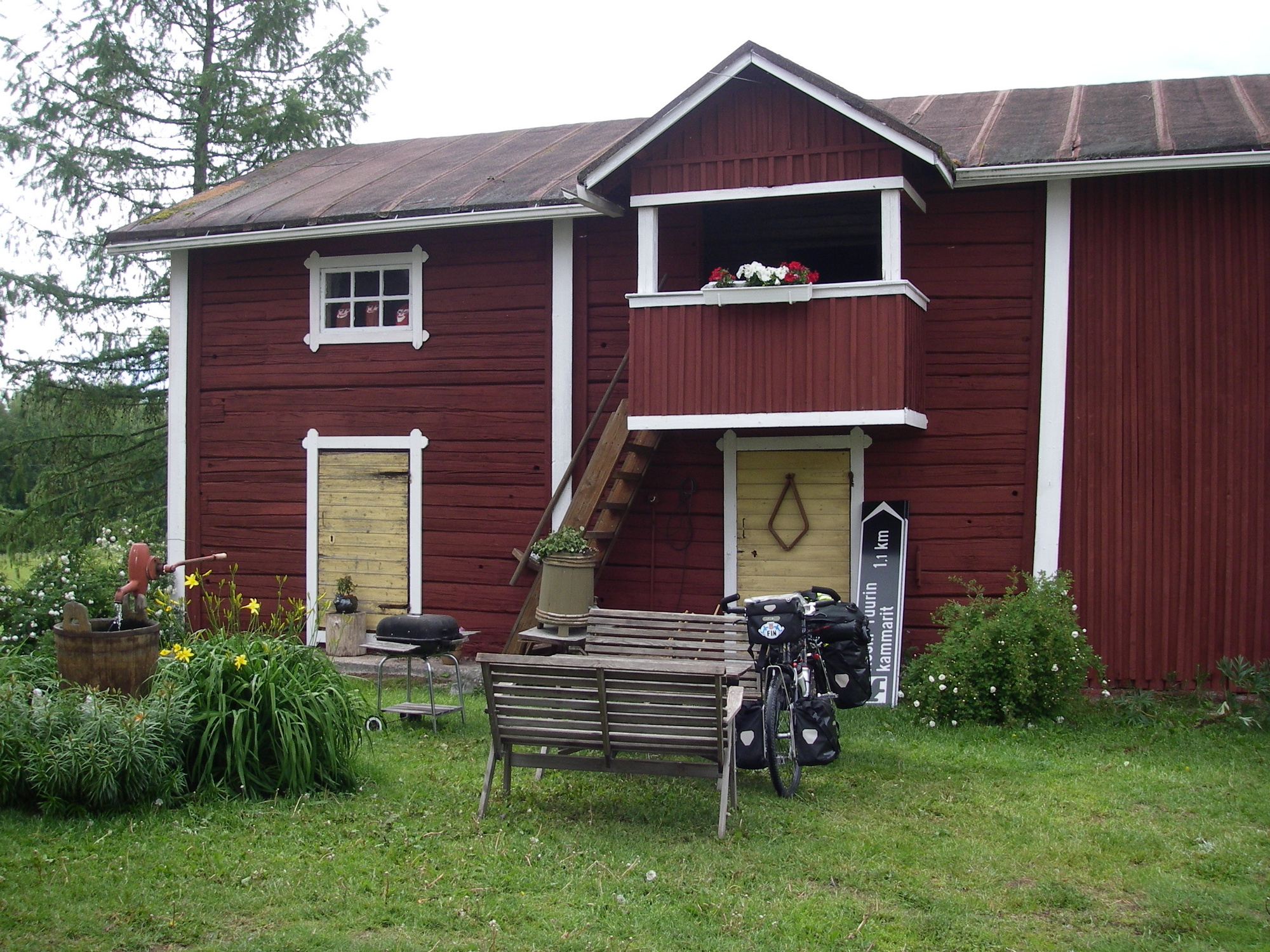 Majapaikka on mukava maatila. Tila on ihan oikea ja toiminnassa. On lehmiä, lampaita, kanoja ja koiria. Emäntä varoitti kukosta joka alkaapitämään meteliä aamulla. Nukun aitassa yön joten kaikki maatilan äänet kuuluvat sisään.