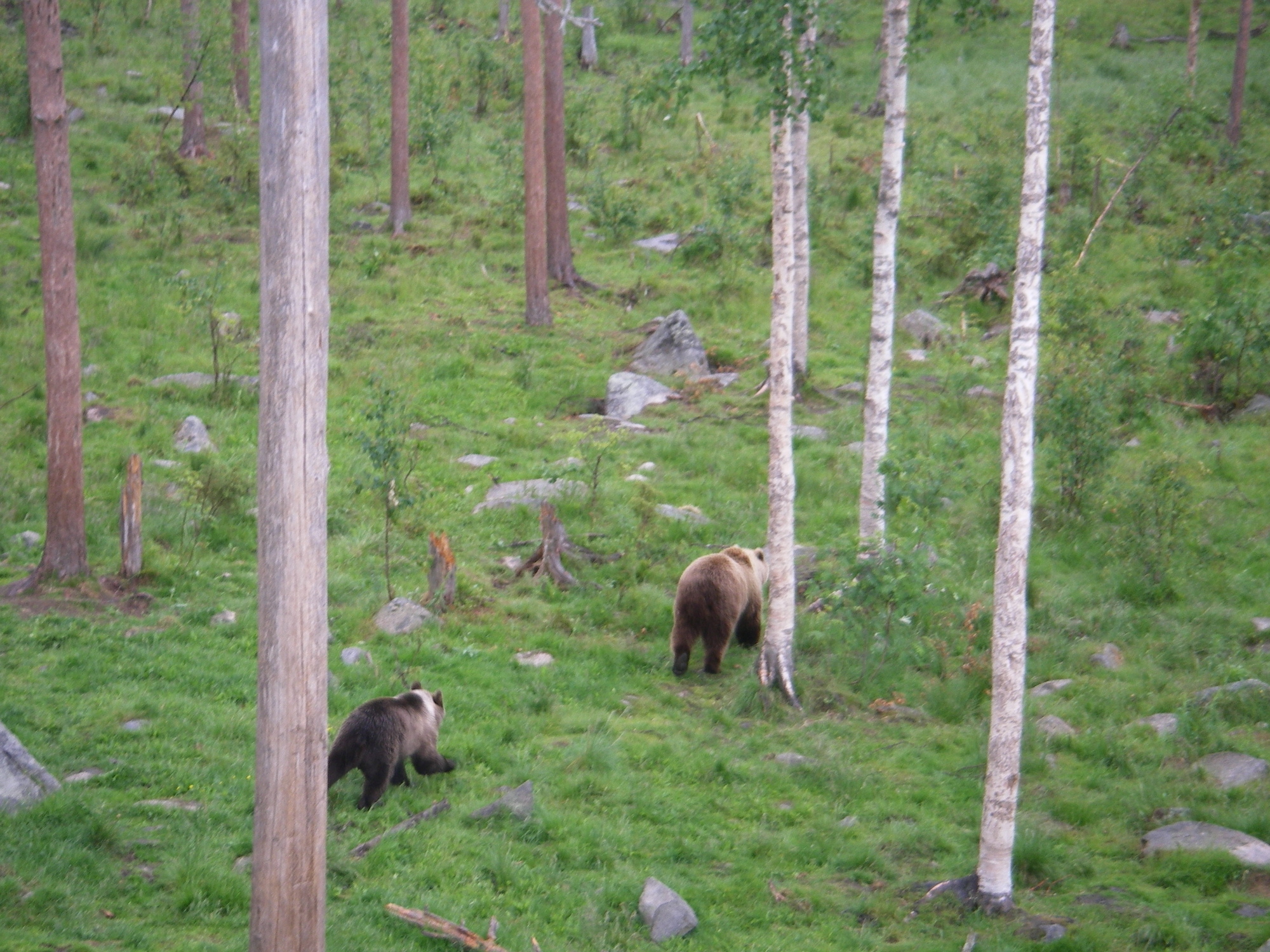 hyvin näkyvillä. Karhulla oli kolme pentua, onneksi välissä oli paksu ja