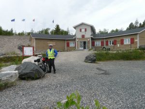Aamiainen valmiista pöydästä on aina ylellisyyttä näillä matkoilla. Sillä jaksaa yleensä noin puolet päivän matkasta. Matka alkoi hienoilla maisemilla, tunturit ovat koko ajan lumisempiaja puita on paljon vähemmän. Alkuun oli hieman ylämäkeä ja sitten olinkin suomen maanteiden korkeimmassa kohdassa. Sinne on rakennettu levähdyspaikka joten jäin hetkeksi ihailemaan maisemia. Ötököitä ei ollut ollenkaan, sen verran kovaa …