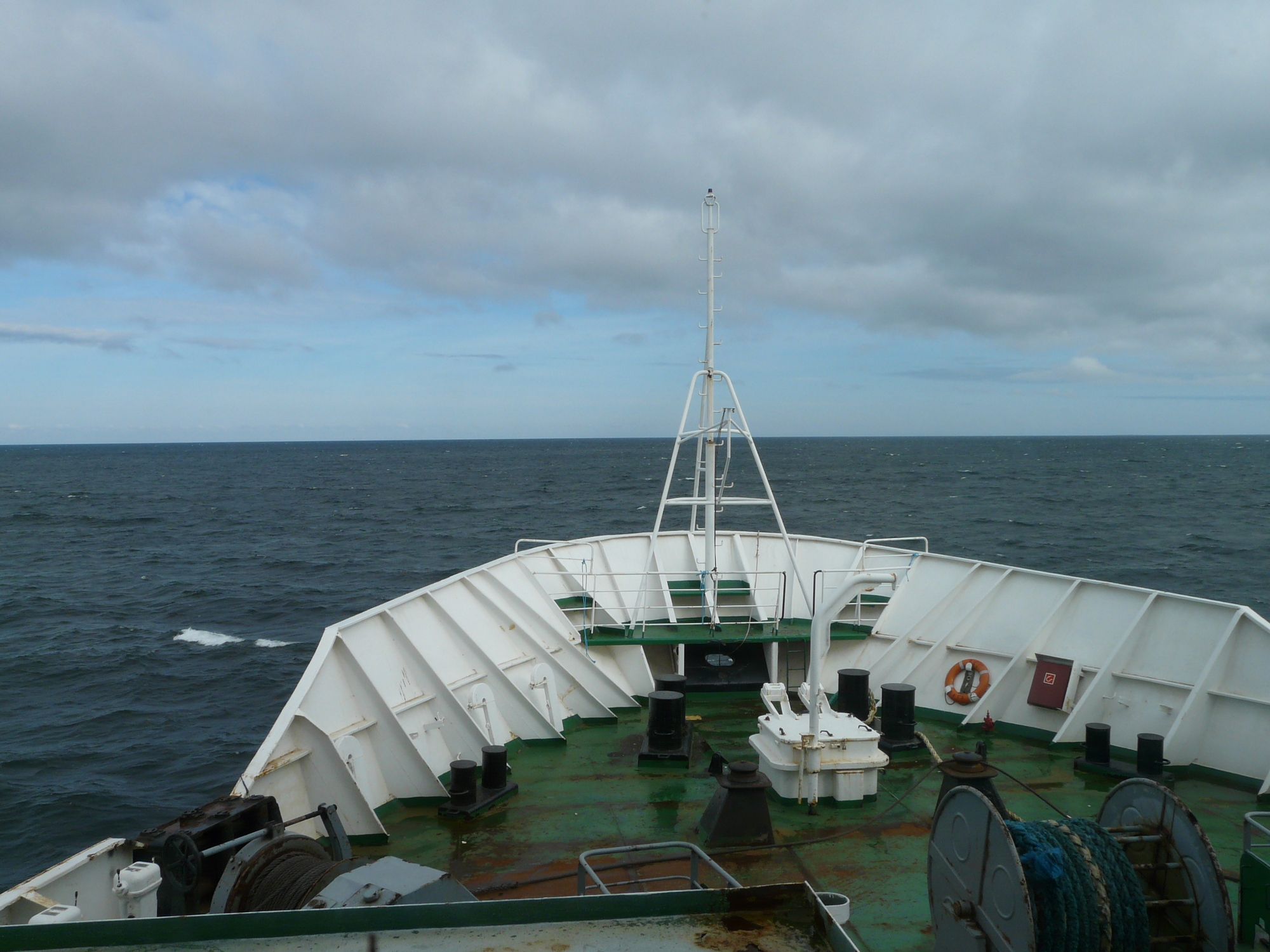 Tuuli oli aamulla aika voimakas, kiva merimatka tiedossa. Satamassa pyörät ja moottoripyörät pääsivät viimeisenä laivaan, jouduimme odottamaan melkein tunnin koleassa tuulessa. Aamiainen ja kuuma juoma maistui odotuksen jälkeen. Aamiaisen jälkeen ajattelin mennä kannelle kuvamaan, se jäi yritykseksi. Tuuli oli niin kova ettei siellä pysynyt pystyssä.