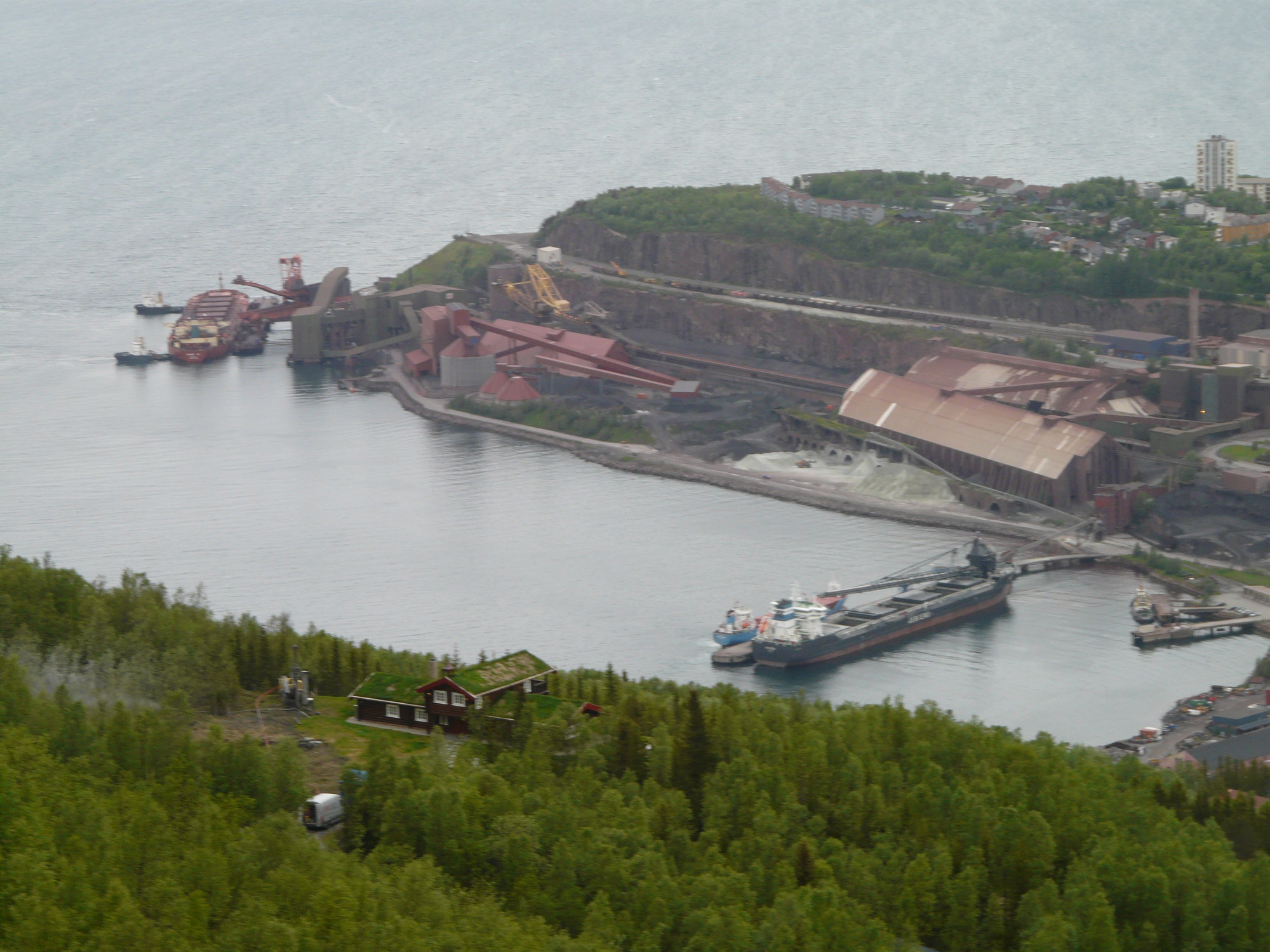 Seuraavaksi katselin kaupungin hulinaa. Kaikilla näytti olevan kiire jonnekkin. Turisteja oli paljon kamera kaulalla vaeltamassa ristiin rastiin. Kirunan malmia lastattiin satamassa laivoihin. Koko kaupunkia hallitsi satama, rautatie ja malmi.