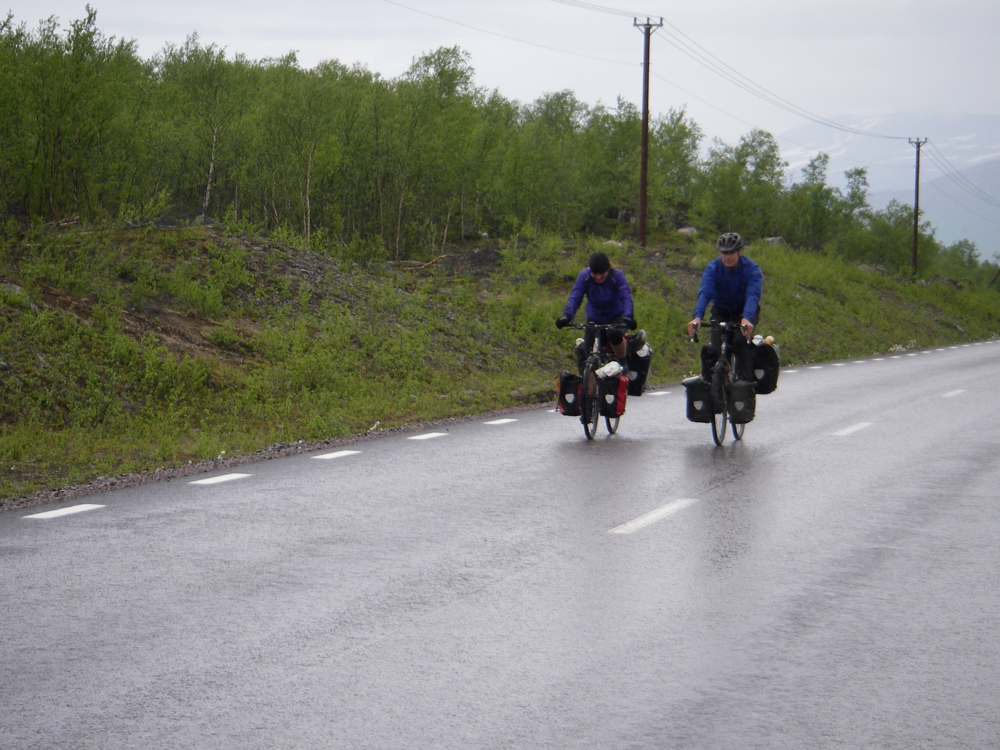 Kirunassa majoituin telttaan, ilma oli mukava ja nyt oli luultavasti viimeinen mahdollisuus nukkkua teltassa. Laitoin pyyhkeen ja vaatteita kuivumaan fillarin päälle ja lähdin syömään. Syömässä ollessani sadekuuro kasteli kaikki läpimäräksi. Taas märät kengät aamulla jalkaan:(