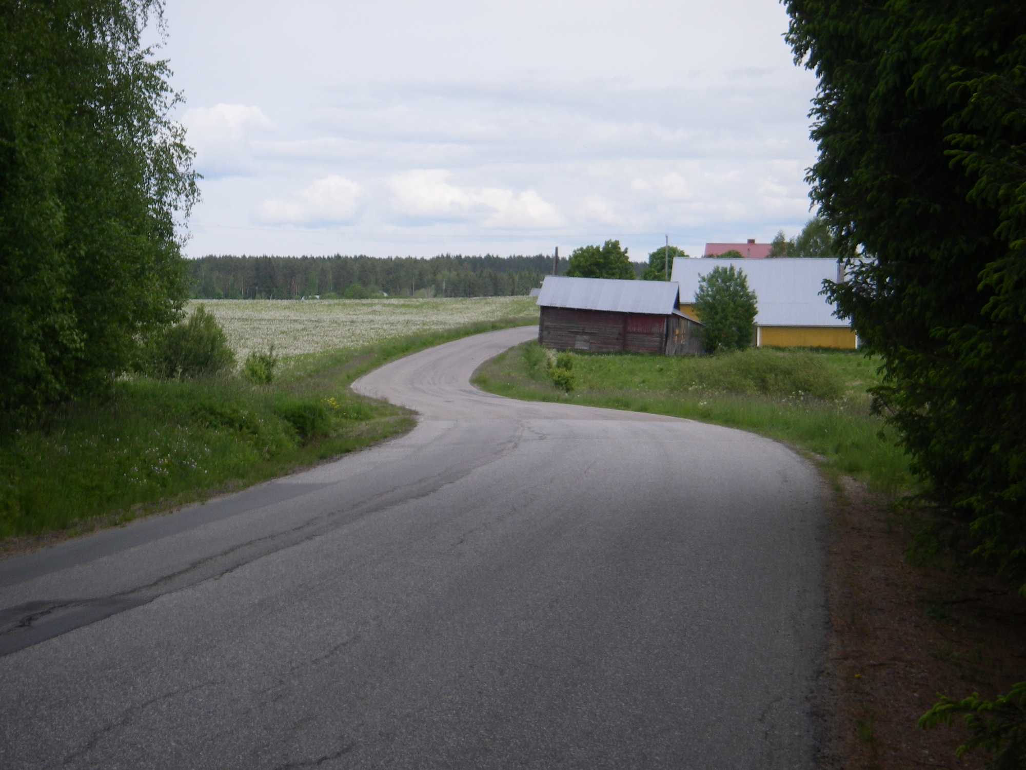 Imatralta lähdin jälleen Runon ja Rajan tielle, ensimmäinen 20 km on museotietä aivan rajan lähellä. Matkalla oli paljon maatiloja ja hakattua metsää. Korppeja oli eräällä pellolla pieni parvi. Mäet ovat olleet tänään hieman pidempiä aikaisempaan verrattuna.