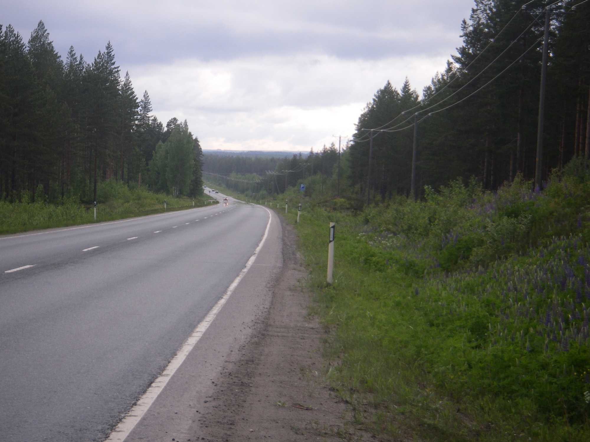 Heräsin aamulla sateen ropinaan, mökki oli mukava valinta. Aamiaisen jälkeen lähdin kutostietä pohjoiseen, liikennettä oli vähän. Laitoin renkaisiin maksimi paineet ennen lähtöä ja sen huomasi, fillari kulki myötätuulessa melkein itsekseen. Pieni sadekkaan ei haitannut, ilmakin pysyi raikkaana.