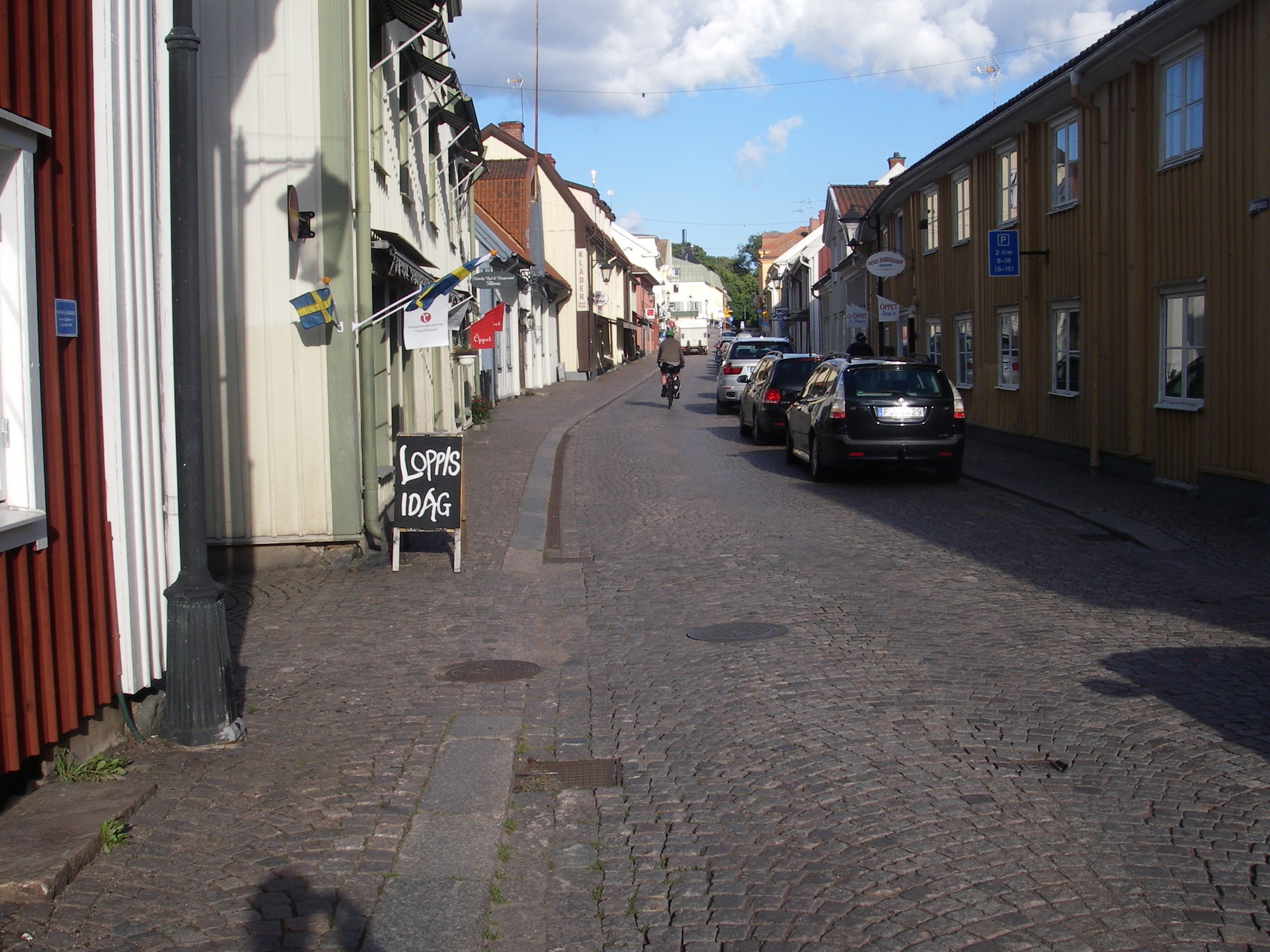 Vimmerbyssä otimme mökin kahdeksi yöksi, oli jo aika pitää lepopäivä. Kaupunki on vilkas turistikohde. Astrid Lindgrenin kotikaupungissa on hänelle nimetty teemapuisto. Keskustassa on kapeita katuja ja paljon puutaloja.