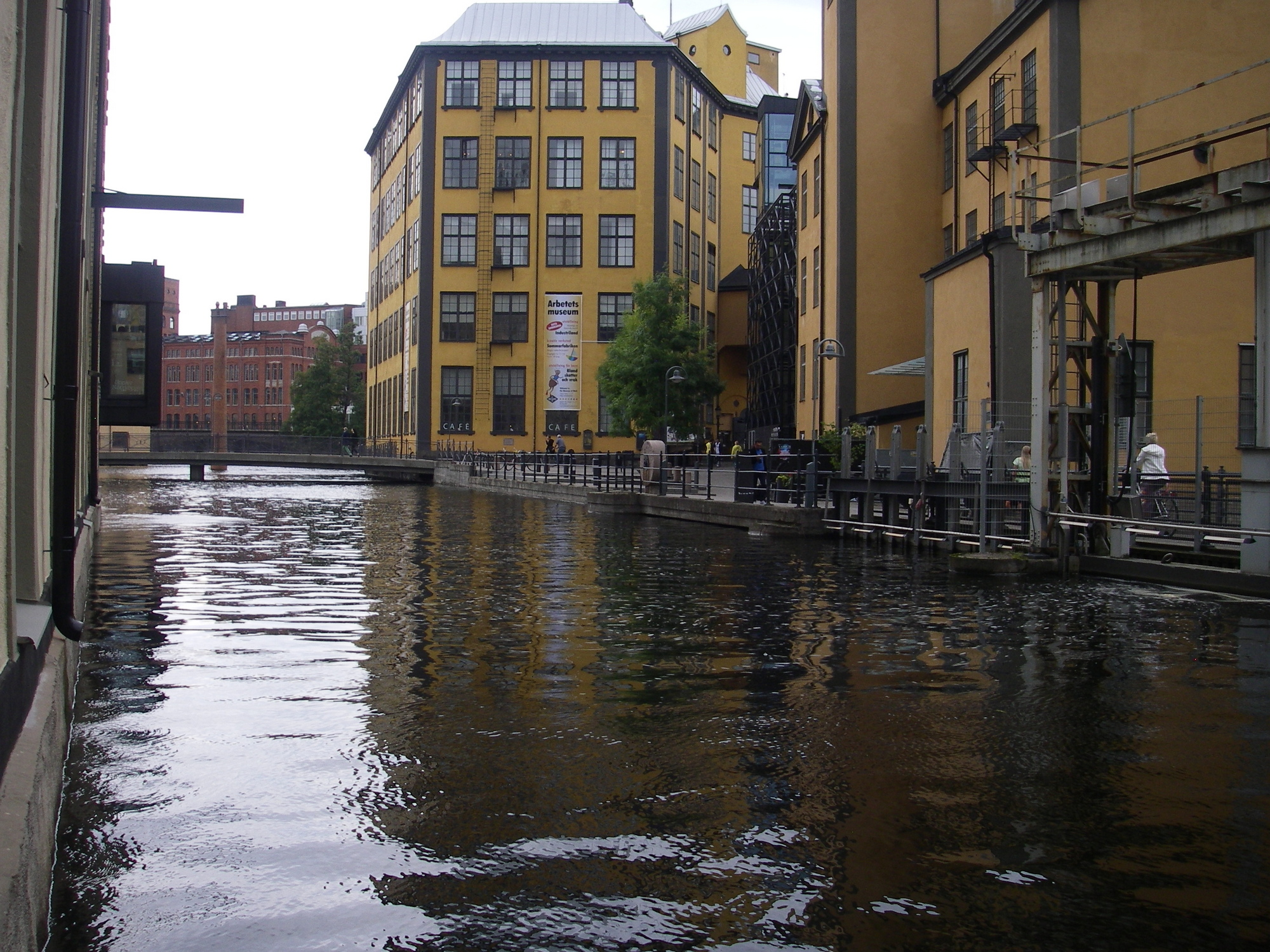Matka Norrköpingiin meni sateessa. Sade loppui juuri ennen kaupunkia. Keskustassa oli valtava koski jonka reunalla. Pysähdyimme syömään hampurilaiset pääkadulla.