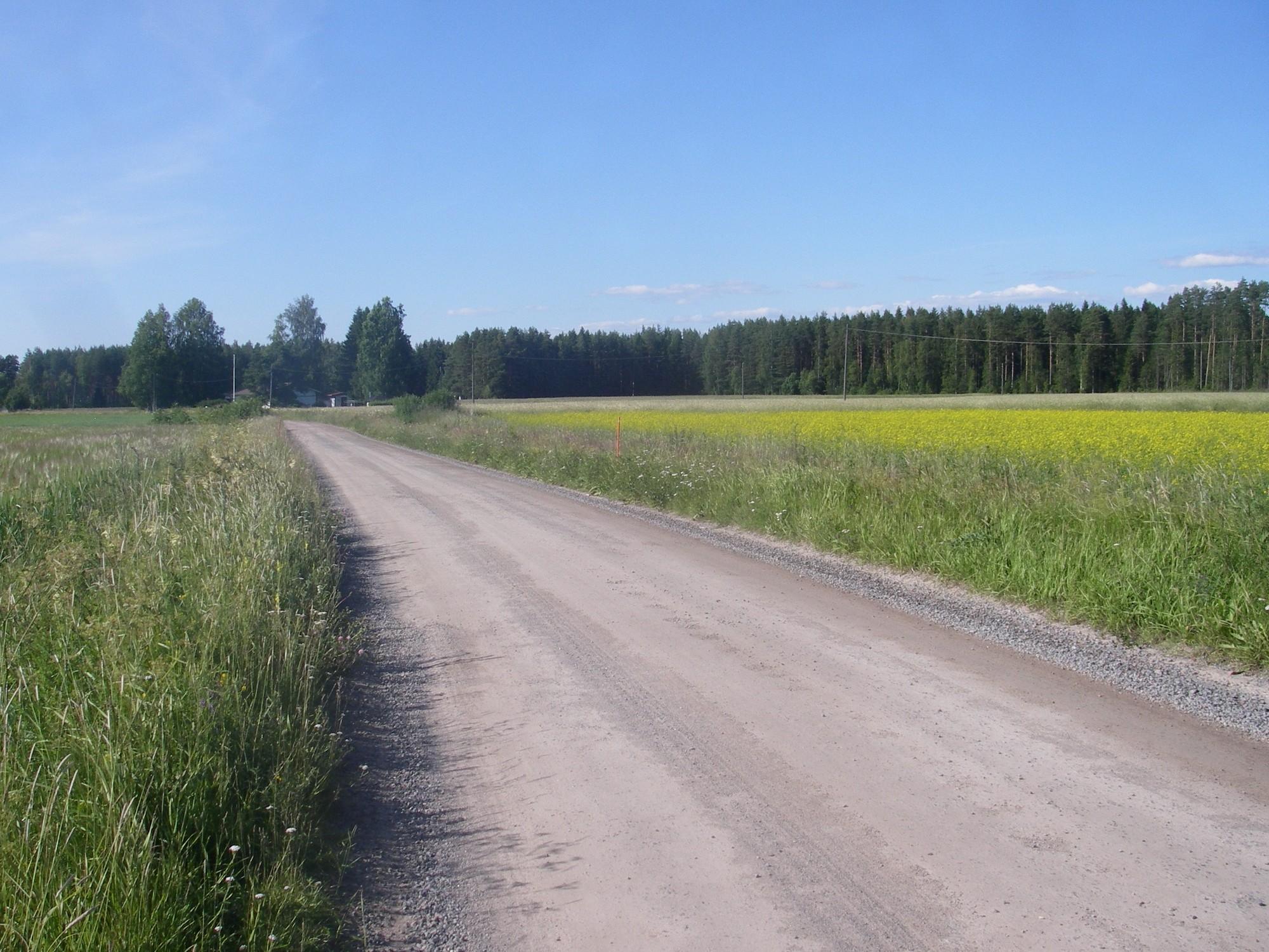 Seuraavaksi ajelin pientä tietä kohti Luviaa. Matkaan mahtui kiva hiekkatie mäntymetsässä. Ilma oli helteinen ja myötäisessä tuulessa viilentävää viimaa ei ole. Tie oli suora ja aaltoili hieman, melkein koko matka mentiin metsässä joten maisemia ei paljonkaan saanut ihailla. Luvialla kävin syömässä ja täydensin vesipullot.