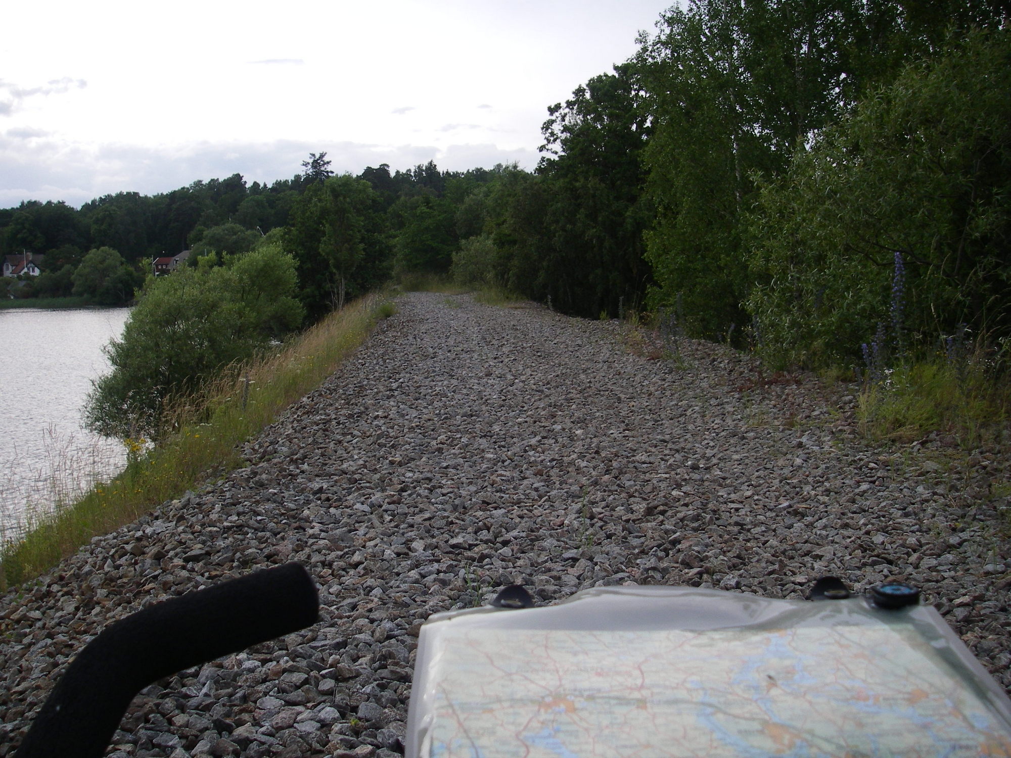 Oikaisimme pienen Krägga kylän läpi. Sieltä pääsi vanhaa rautatien pohjaa pitkin järven yli. Siinä oli pieni siltakin josta oli kiskot poistettu. Kivaa vaihtelua liikenteen keskellä ajamiseen.