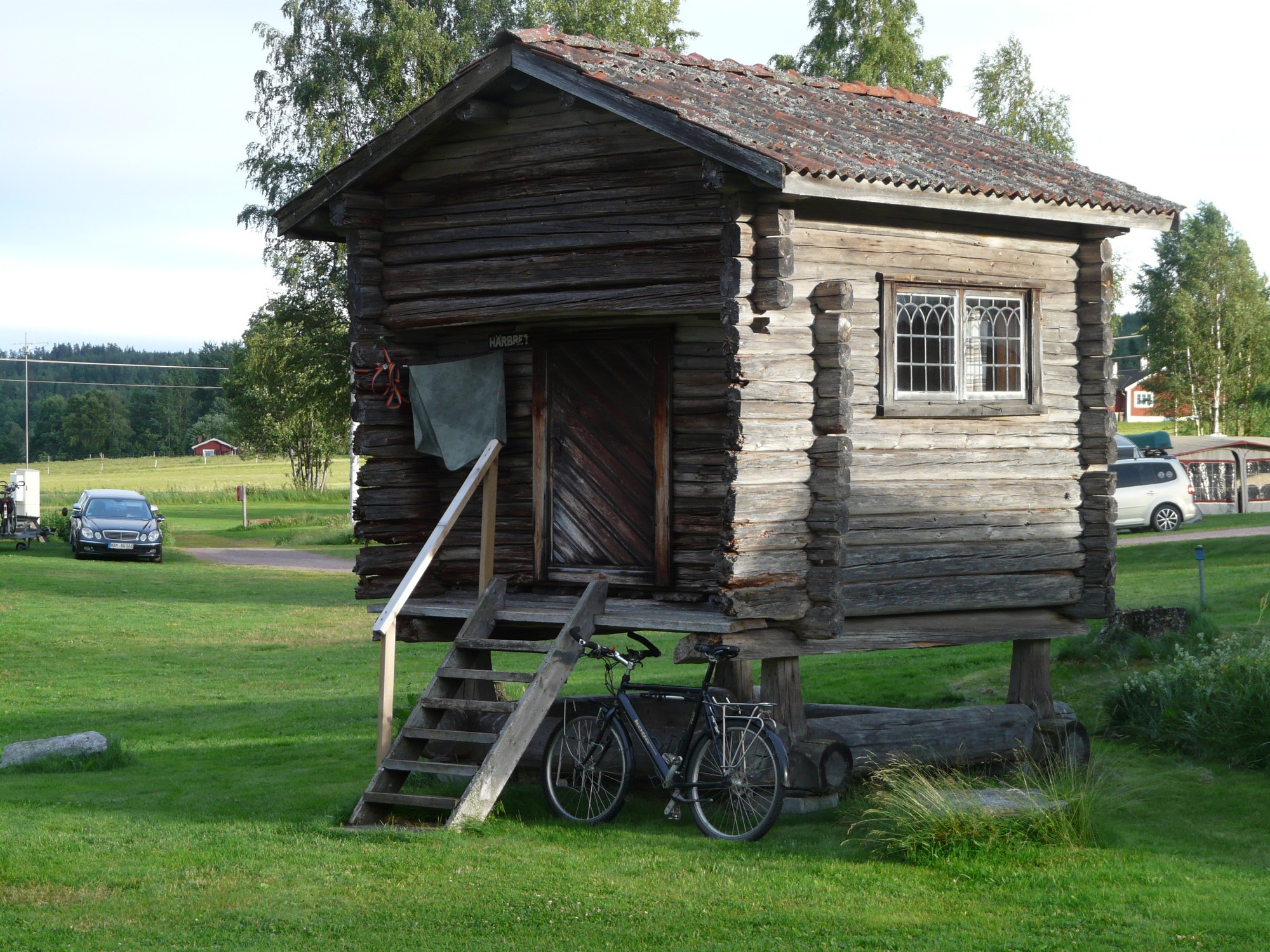 Leksandin lähestyessä liikenne vlikastui ja aloin miettimään jotain oikoreittiä. Jouduin alueelle missä oli kapeita katuja ja paljon punaisia vanhan mallisia hirsitaloja. Päädyin sieltä melkein suoraan Västervikin risteykseen. Ajoin suoraan leirintäalueelle josta olin varannut jonkun mökin tapaisen häkkyrän. Se on kuin pieni mökki korkeilla jaloilla.