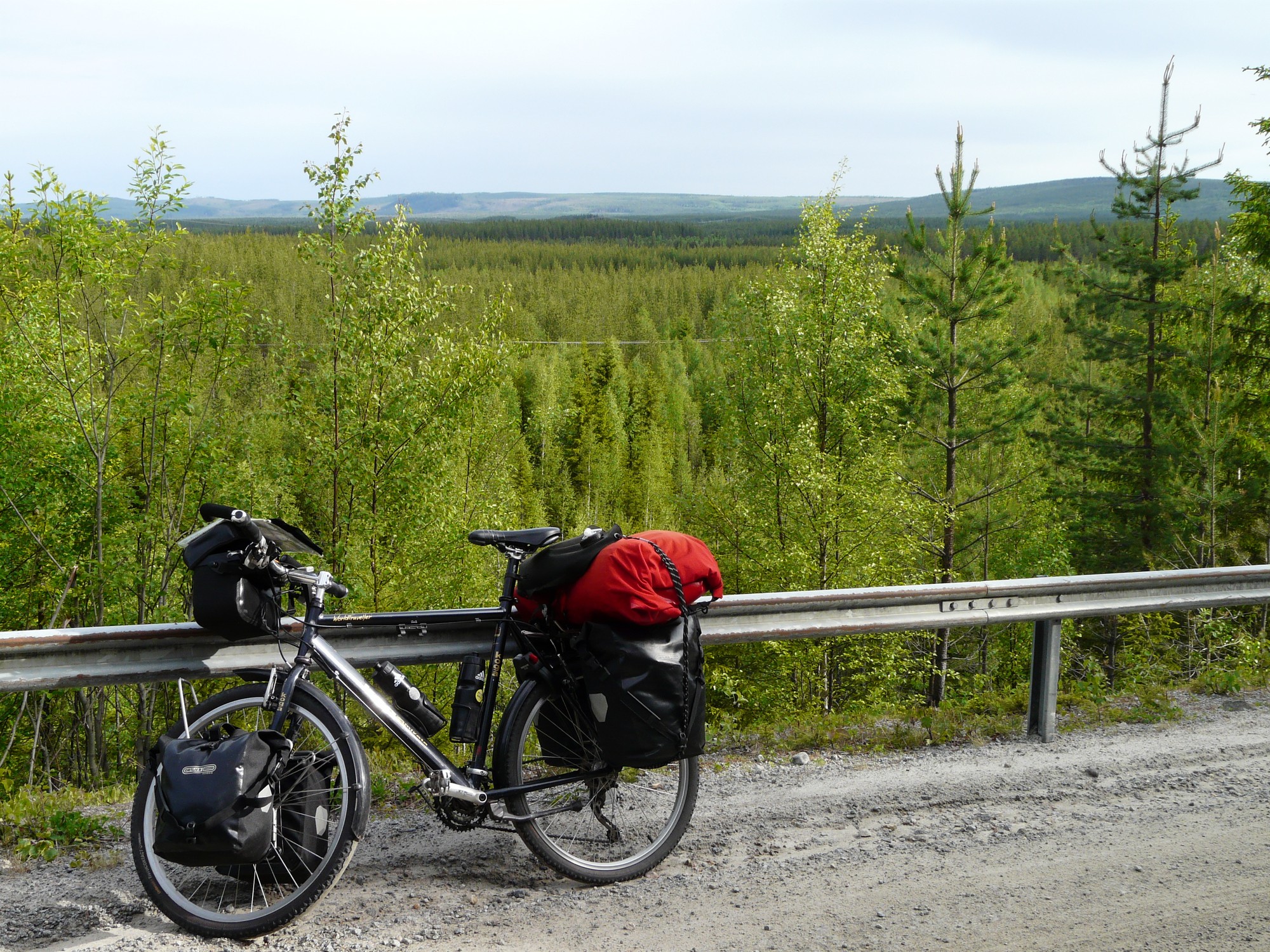 Päivä lähti sujuvasti käyntiin. Aamuhässäkät meni rutiinilla ja pääsin ajoissa matkaan. Pieni takaisku tuli kun huomasin ettei matkamittari toimi. Onneksi vika löytyi nopeasti, olin pakatessa tuupannut anturin mangneetin sijoiltaan. Olin päättänyt oikaista vain muutaman kilometrin pidemmän reitin Åseleen, se oli tietenkin 33 km hiekkatietä.