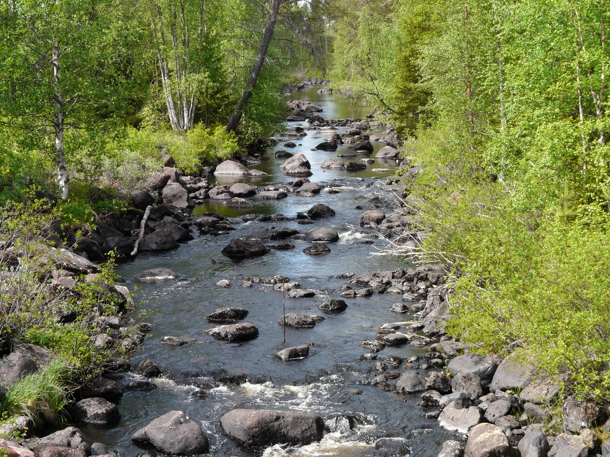 Pääsin puolet matkasta pientä hiekkatietä vesivoimalan kohdalle. Siitä pääsi patoa pitkin joen toiselle puolelle. Tuuli oli niin kova että jouduin taluttamaan fillarin padon yli. Isolla tiellä metsä suojasi välillä tuulelta. Jouduin välillä pysähtymään kun tuuli yltyi niin kovaksi että se työnsi minua penkkaan, en hirveästi uskaltanut nojata tuuleen koska se oli puuskittaista ja liikenne aika vilkasta. Pienellä tiellä tuuli ei haittaa niin paljoa koska muuta liikennettä on vähän. Siellä voi kiemurrella kovassa tuulessa turvallisesti.
