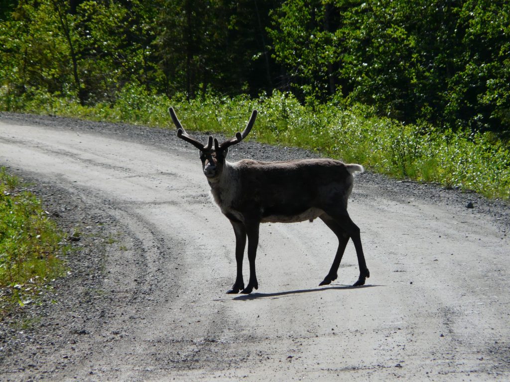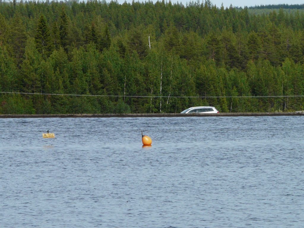 Päivä alkoi kivassa myötätuulessa, matka eteni nopeasti. Stenselessä pysähdyin hetkeksi kuvaamaan suurta puukirkkoa. Pian sen jälkeen käännyin oikotielle. Se oli alussa hieman vaikea ajaa, tielle oli levitetty paksu kerros karkeaa sepeliä. Antero kuvaili joskus vastaavaa tietä kuulalaakeritieksi. Tien pinta parani kun pääsin pidemmälle, samalla se kapeni huomattavasti. Maisemia näkyi aina välillä kun mentiin mäen päälle. Porokin ihmetteli keskellä tietä, se onneksi juoksi pois kun pääsin lähemmäksi. Grundforsissa käännyin väärälle tielle ja päädyin isolle tielle 15 km liian aikaisin.