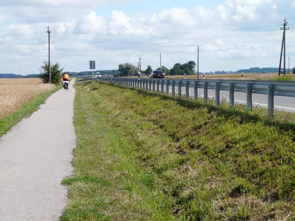 Lähdimme tauon jälkeen pyörätietä kohti Pilviskaita. Alussa oli pyörätietä noin 7 km, se oli luotisuora ja tasainen. Oli rauhoittavaa ajaa poissa liikenteen keskeltä. Pilviskai oli pieni kylä, siellä oli vain kauppa ja muutama talo.