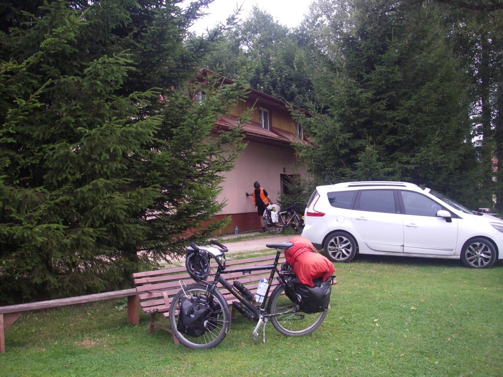Aamulla oli pilvistä ja hieman satoikin. Tuuli oli kova ja myötäinen, sen avulla pääsimme nopeasti Liettuan rajalle muutamasta jyrkästä mäestä huolimatta.