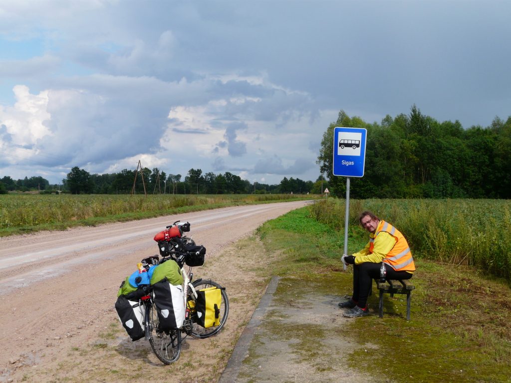 Sitten päästiin matkaan ja mitä tekee Der Führer? Ohjasi meidät kaupungin halki jonnekin ihan vikasuuntaan useita kilometrejä! Ajatti meitä siis ihan turhaan… ?? Käännyttiin ympäri, ajettiin kaupungin halki toiseen suuntaan ja taas saivat latvialaiset tuijotettavaa. Ihmiset kun tuppaavat tuijottamaan matkapyöräilijöitä ihan joka maassa.