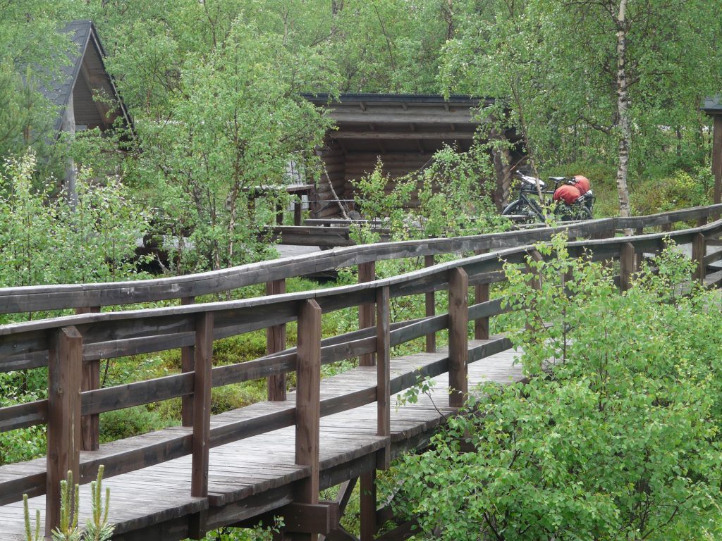 Kahville pysähdyin Sonkamuotkassa, siinä on kaksi kahvilaa jotka myyvät kahvia halvalla ja yrittävät samalla myydä turisteille krääsää. Kaksi kahvia ja savuporoleipä maksoivat 4,50 joten edullista oli. Sade oli tauonnut kun jatkoin matkaa, kuuroja ropisi niskaan Hettaan asti. Sotkajärvellä kävin lintutornissa katselemassa maisemia, itikoita oli valtavasti. Offia en halunnut laittaa sadekuurojen vuoksi joten jatkoin matkaa aika pian.