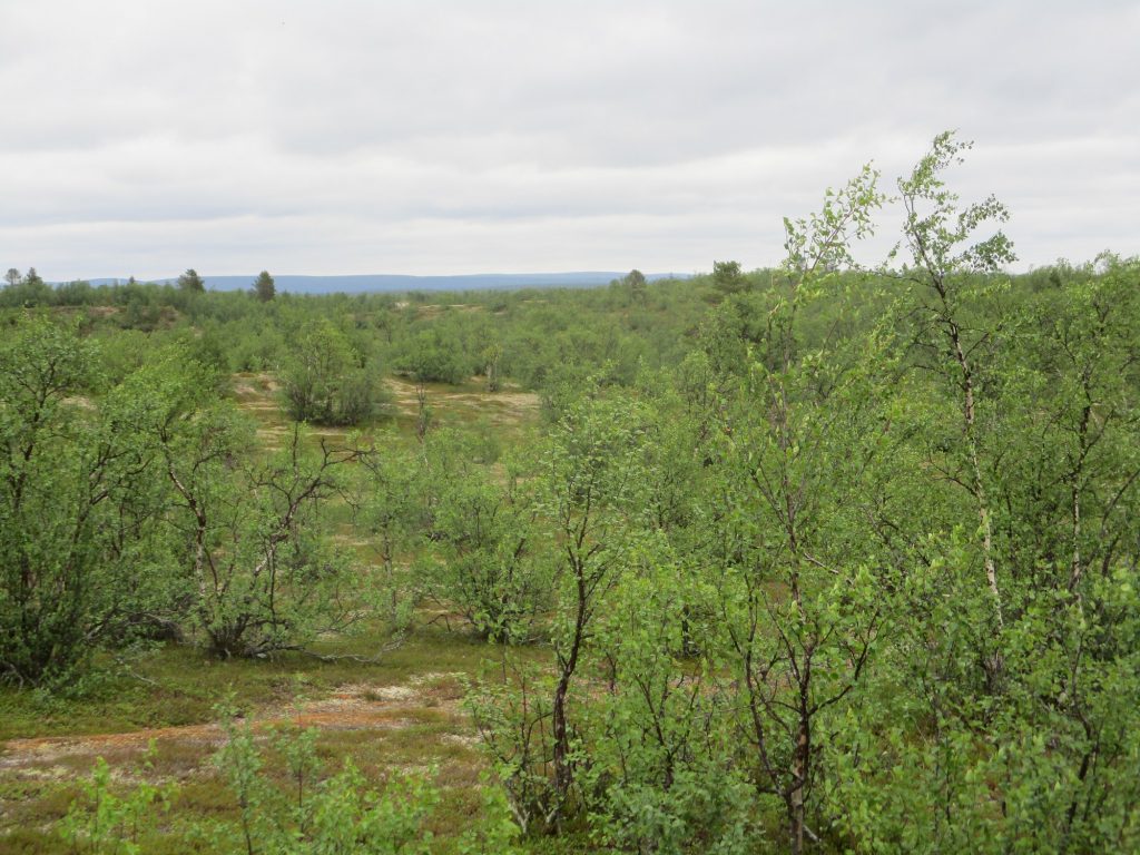 Sade oli loppunut kokonaan kun lähdin viimeiselle etapille. Tuuli oli sen sijaan vastainen koko 26 kilometrin matkan. Tie nousi hitaasti korkeammalle melkein koko ajan, oli siinä pari pitkää alamäkeäkin. Jossain Leppäjärven kohdalla huomasin ettei mäntyjä ollut ollenkaan, vain vaivaiskoivuja ja pensaita.