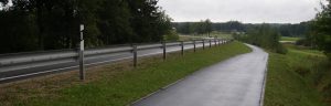 Juha Päivän ensimmäinen nähtävyys oli remontissa oleva voimalaitoksen pato Kegumsissa. Onneksi siinä oli erikseen väylä kevyelle liikenteelle. Pääsimme sitä pitkin helposti yli ohi liikennevalojen. Daugava joen jälkeen oli noin kilometrin pituinen ylämäki, sen jälkeen oli taas tasaista. Maisema oli vieläkin aika tasaista, metsää oli enemmän kuin peltoa. Se oli mukavaa koska vastatuuli voimistui koko ajan, …